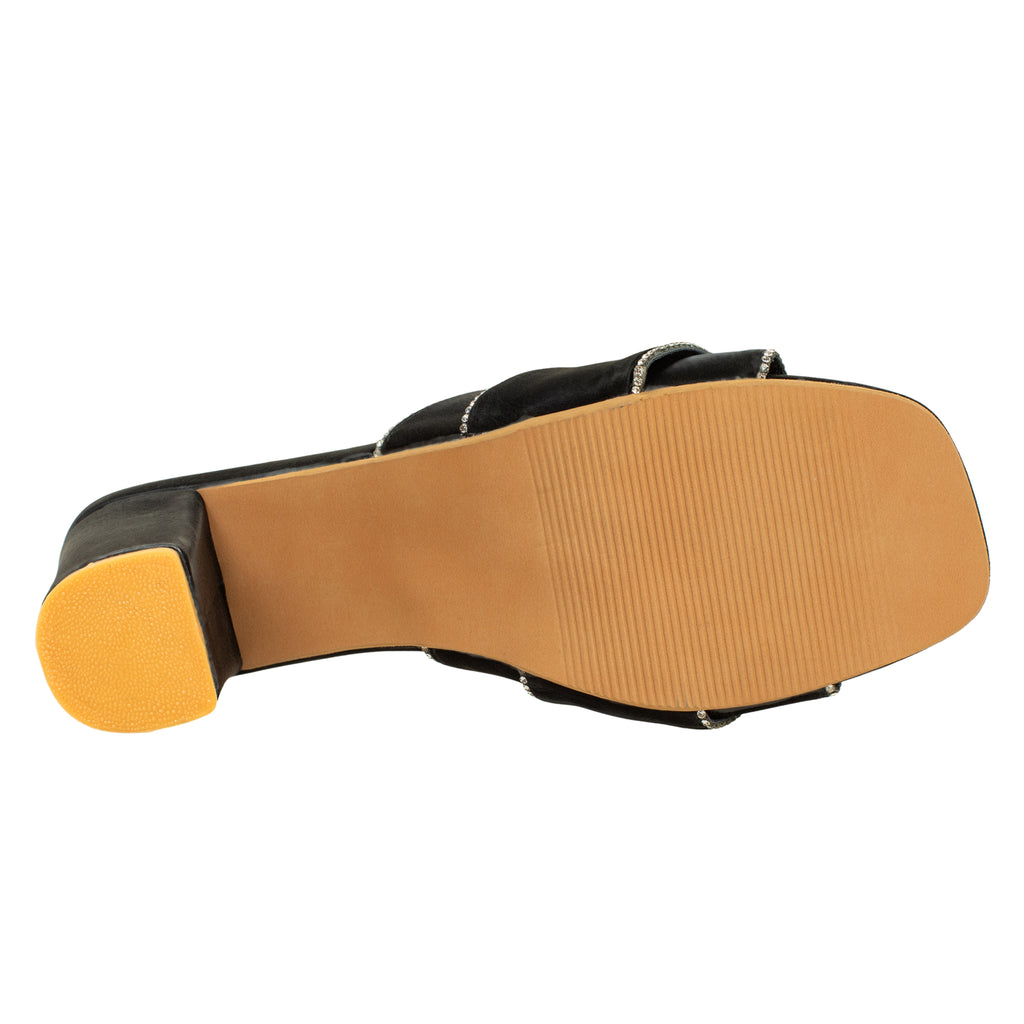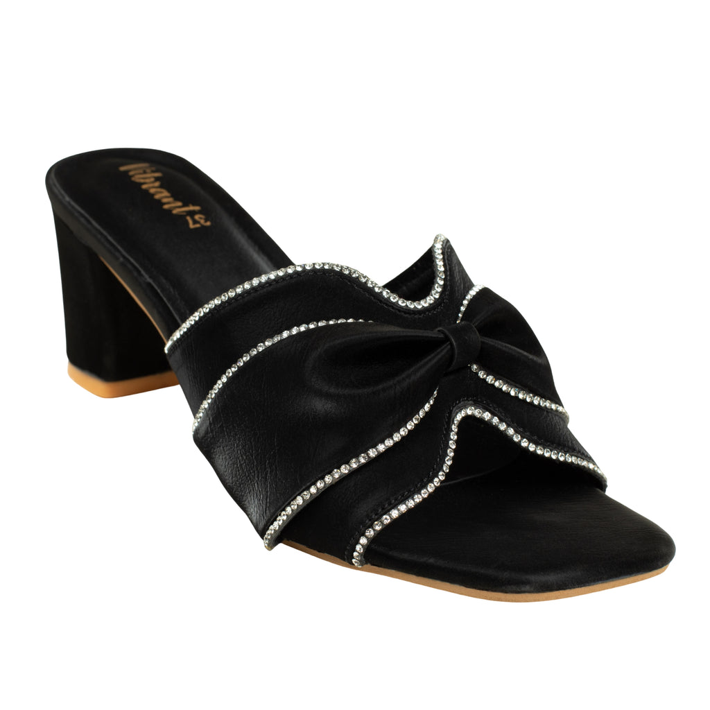 Step into timeless glamour with the Black Stride Heeled Mules, crafted in a shimmering metallic grey satin finish. The elegant pleated knot design is elevated with rhinestone accents, making these mules the perfect blend of sophistication and sparkle. A sturdy block heel and cushioned insole ensure both comfort and style, whether for weddings, evening parties, or festive occasions.