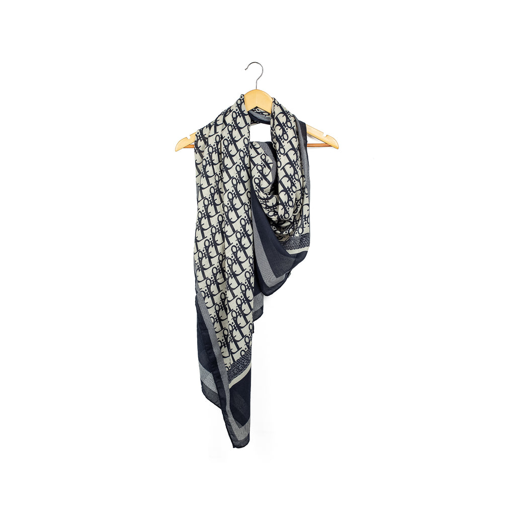 Make a sophisticated statement with this striking navy and beige-patterned scarf. Featuring a bold, repeating logo-style print in contrasting colors, this scarf adds an instant touch of high-fashion appeal to any ensemble. Crafted from a soft, lightweight, and breathable viscose fabric, it's comfortable for year-round wear. The versatile design allows it to be styled in multiple ways—drape it over your shoulders as a chic wrap, wear it as a classic neck scarf, or tie it to a handbag for a modern, designer-inspired accent.