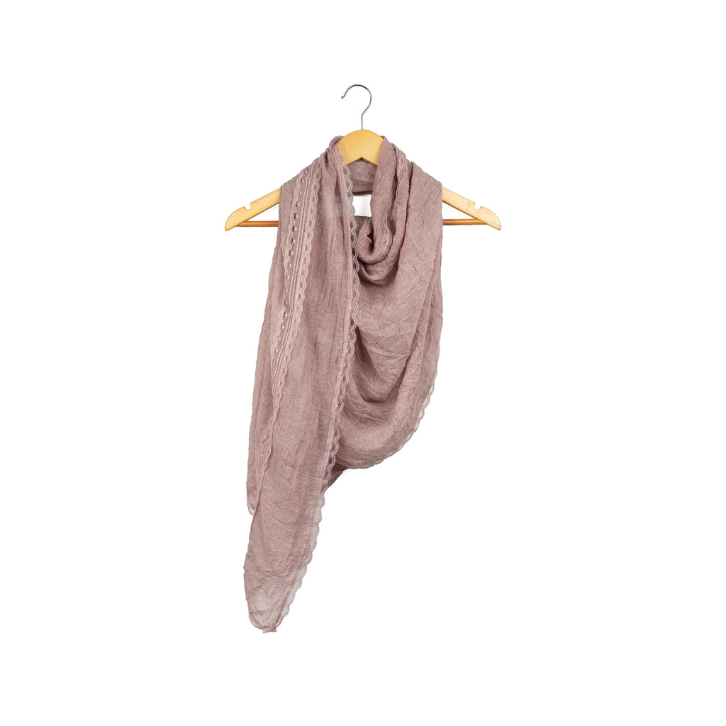 Elevate your style with this classic taupe-brown scarf, a perfect blend of delicate texture and timeless elegance. Made from a soft, lightweight polyester fabric, this scarf is ideal for year-round wear. The subtle, lace-like detail along one side adds a touch of feminine charm, making it a versatile accessory that complements both casual and dressy outfits. Whether you drape it over your shoulders as a shawl, wear it as a chic neck wrap, or use it to accessorize your handbag, this scarf is a must-have for every wardrobe.