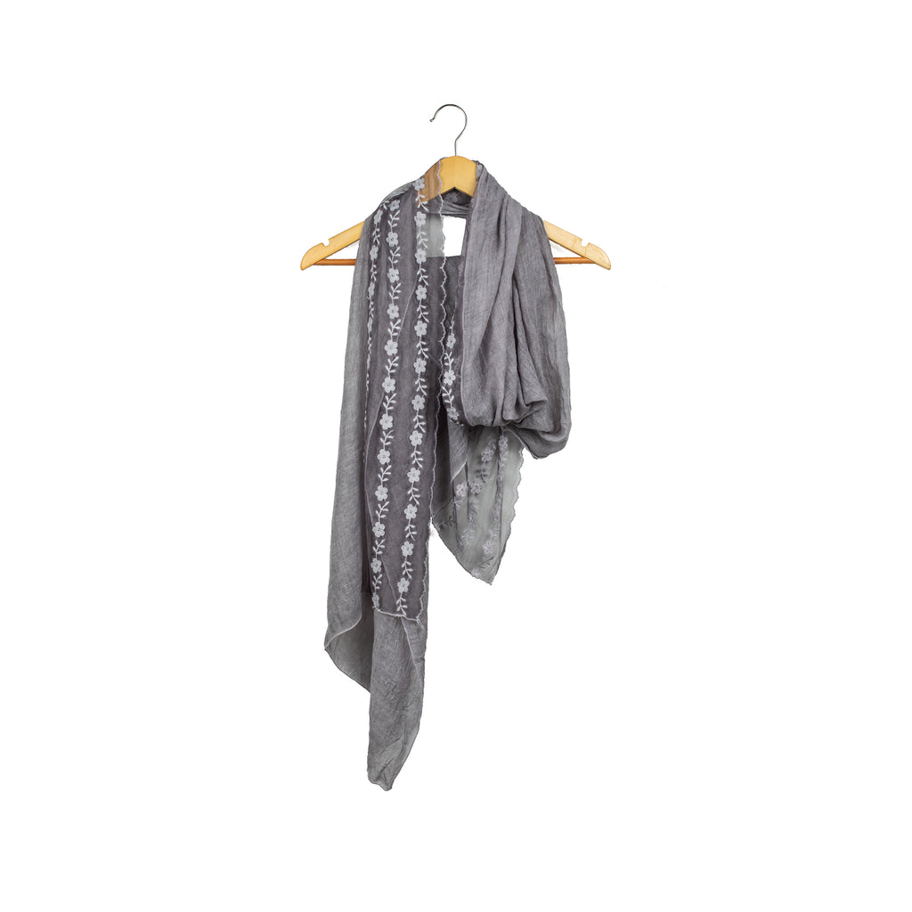 Embrace classic elegance with this timeless Purple and beige mixed color scarf, a versatile accessory that adds a touch of sophistication to any outfit. Crafted from a soft, lightweight, and breathable polyester fabric, this scarf is ideal for year-round wear. The standout feature is the delicate white floral embroidery that runs along one side, creating a beautiful and intricate contrast against the neutral background. This piece can be styled in multiple ways—drape it as a shawl for a formal event, wear it as a neck scarf for everyday style, or tie it to a handbag to elevate your accessories.