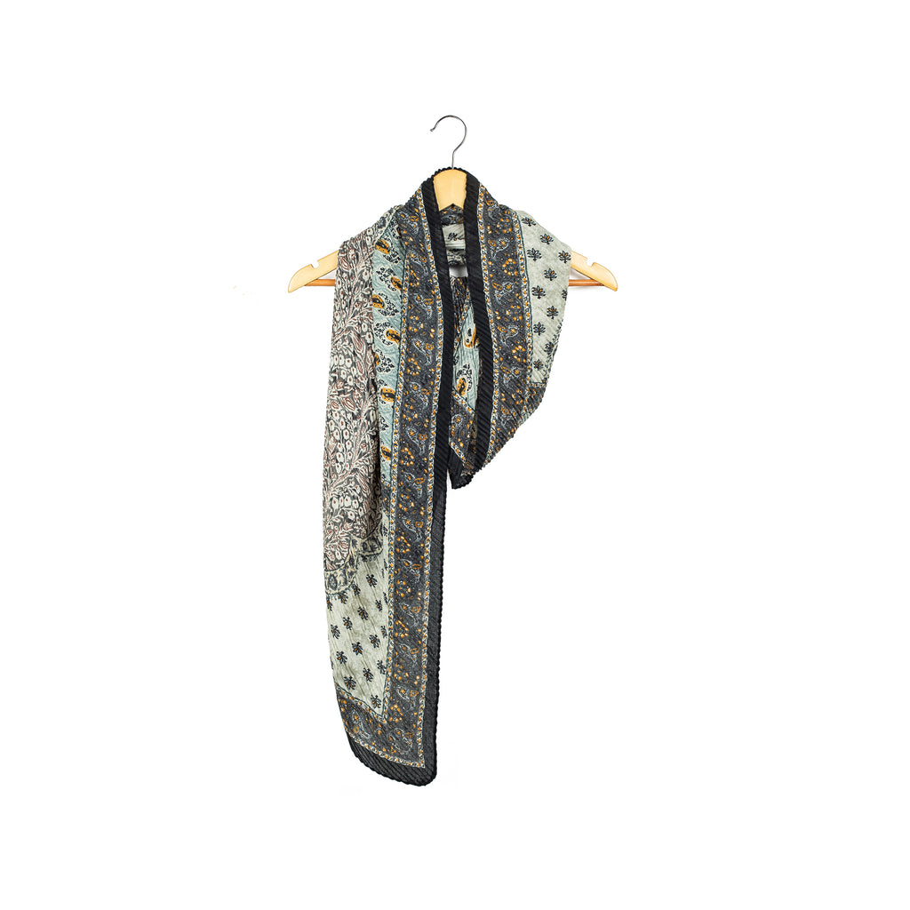 Make a statement with this bohemian-inspired multi-pattern scarf, blending soft hues of blue, beige, and black with intricate prints. Designed from lightweight, breathable Viscose fabric, this versatile scarf is perfect for adding a stylish touch to any outfit. Whether draped elegantly around your neck, worn as a shoulder wrap, or styled as a trendy handbag accessory, this scarf is your go-to piece for casual days, work looks, or travel adventures.