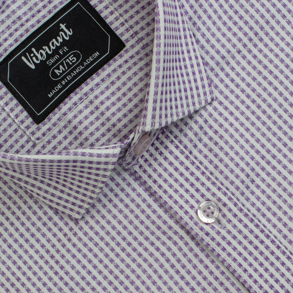Upgrade your formal collection with this essential textured shirt from Vibrant. Presented in a handsome lavender micro-pattern, this shirt strikes the perfect balance between classic and contemporary. The modern slim fit ensures you look sharp and put-together, while the high-quality, breathable cotton fabric guarantees comfort all day long.