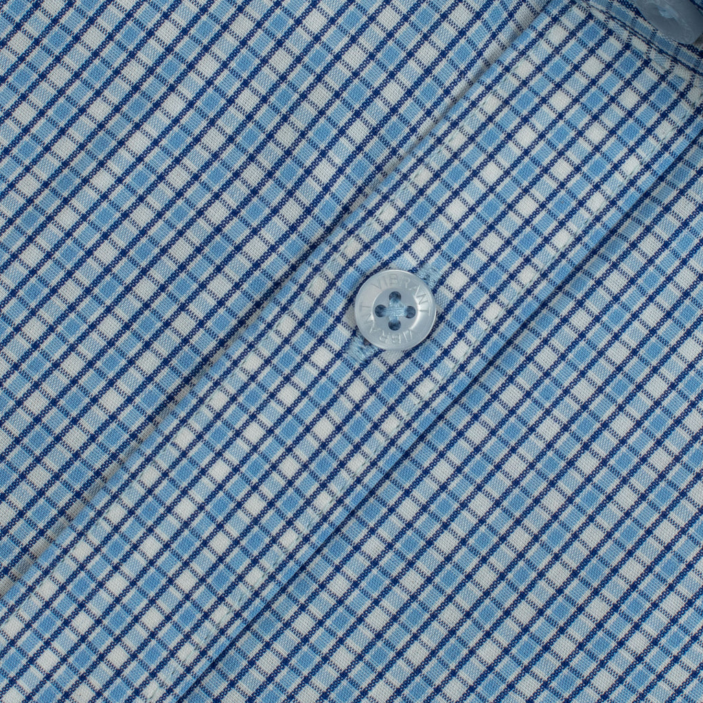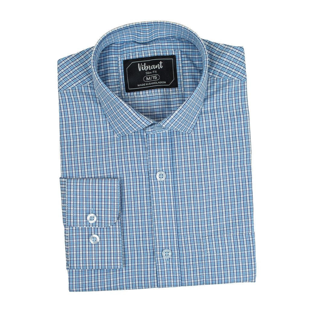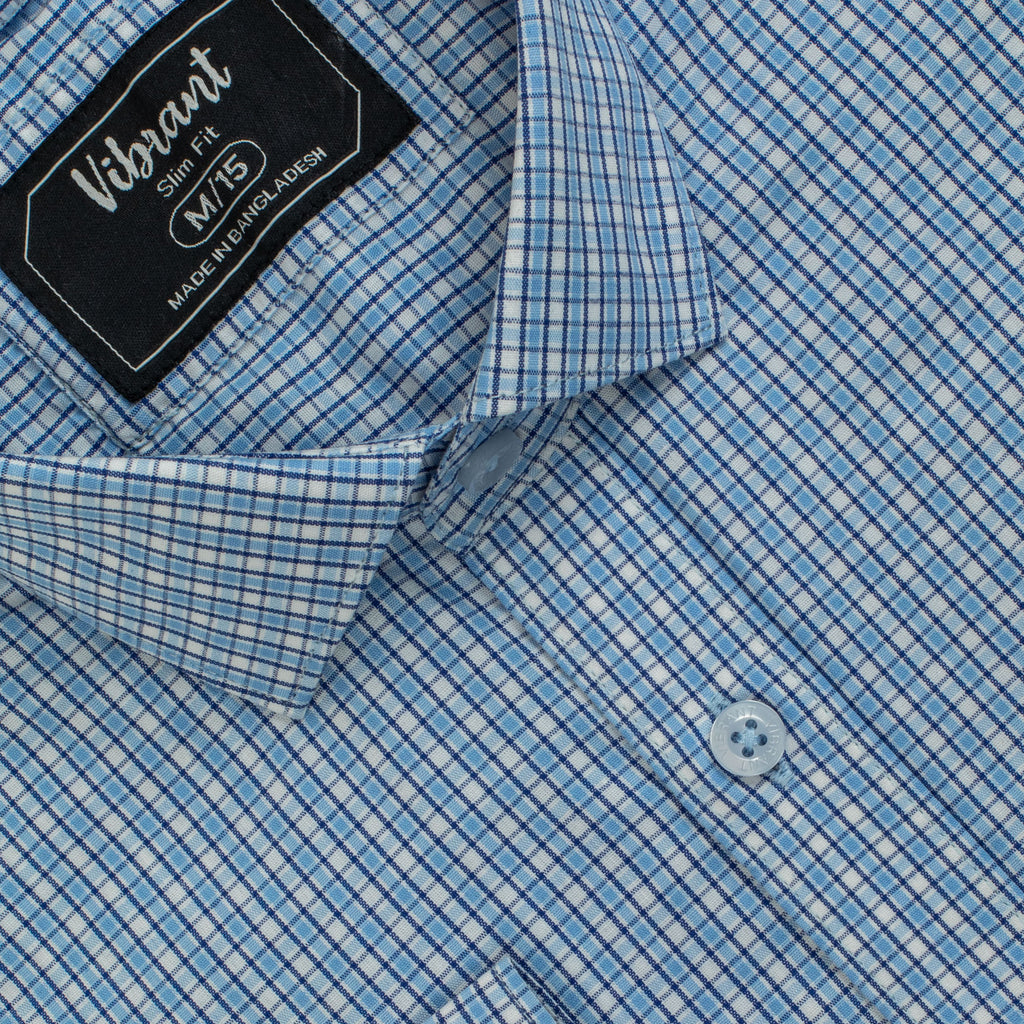 Look sharp and feel confident in this classic check dress shirt from Vibrant. Cut in a modern slim fit, it’s crafted from smooth, breathable cotton for all-day comfort. The timeless light blue and white grid pattern is perfect for any professional or formal setting. A true wardrobe essential, this shirt pairs effortlessly with suits and trousers alike. Featuring a standard collar and adjustable cuffs for a polished finish.