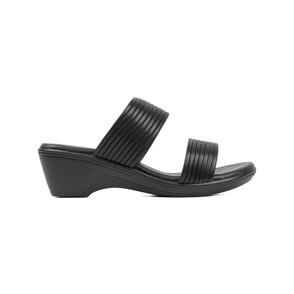 Step into comfort and style with the Textured Strap Wedge Sandal in Black. With its sleek, minimalistic design, this wedge sandal features wide straps with subtle texturing for a modern look. The wedge heel offers just the right amount of height while ensuring stability and comfort, making it an excellent choice for casual wear or day-to-night occasions.
