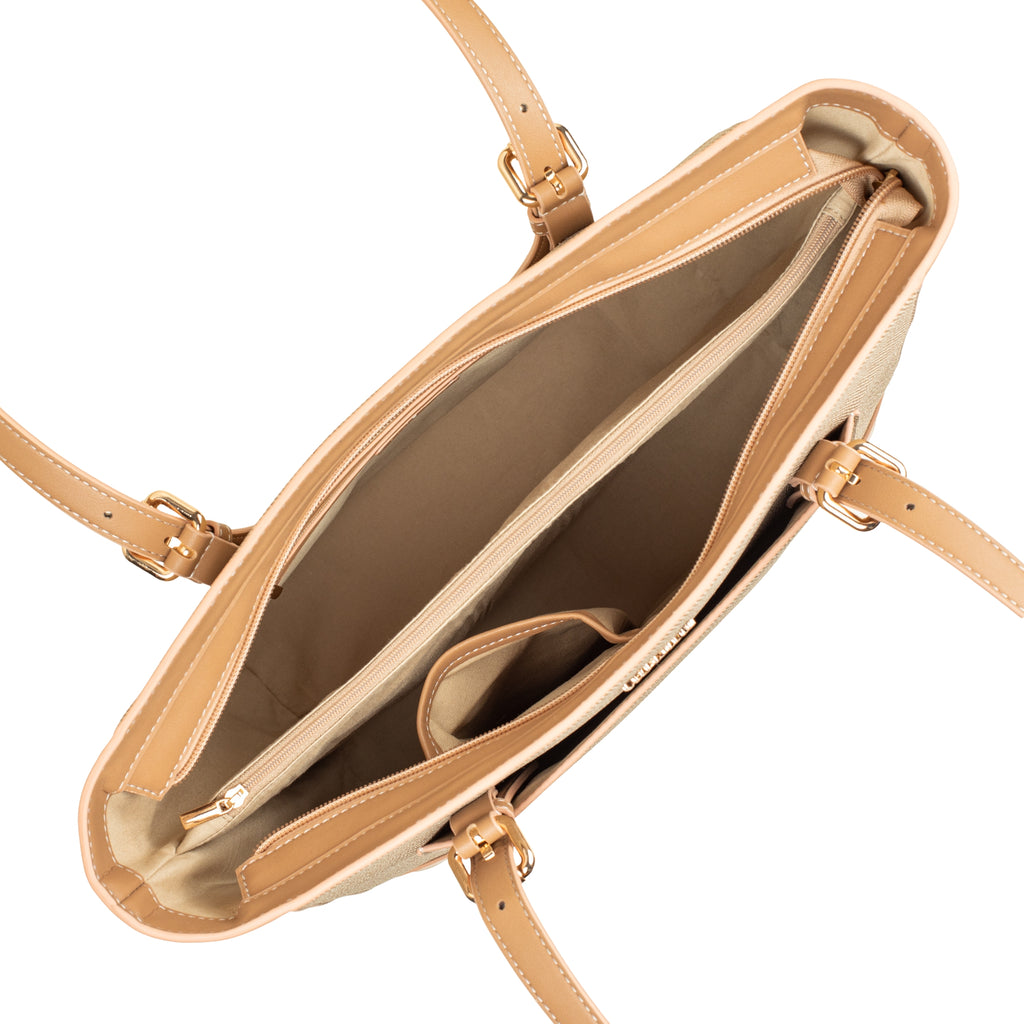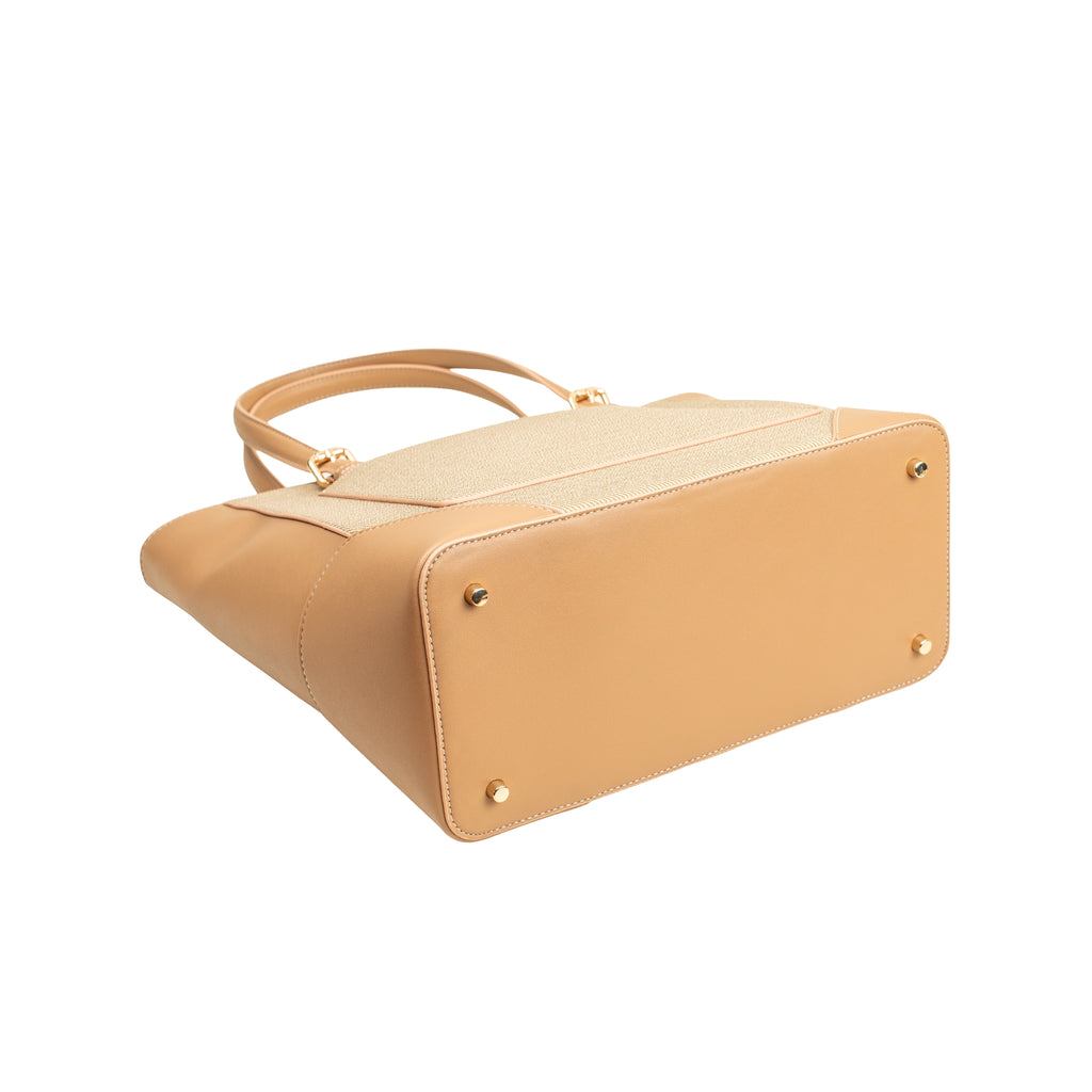 Its wide gusset provides excellent storage capacity while maintaining a structured, classy silhouette. Strong shoulder handles ensure comfortable all-day carry.