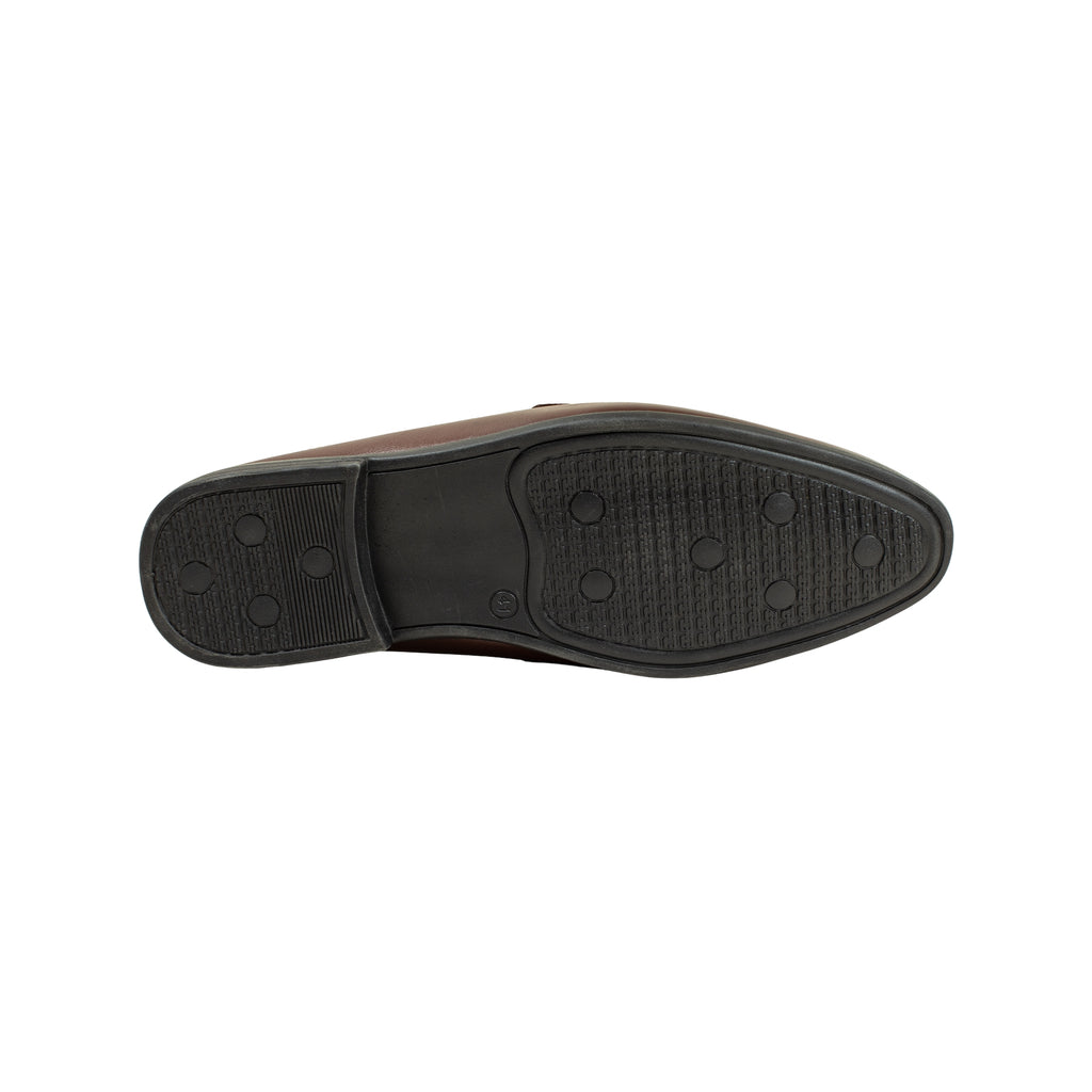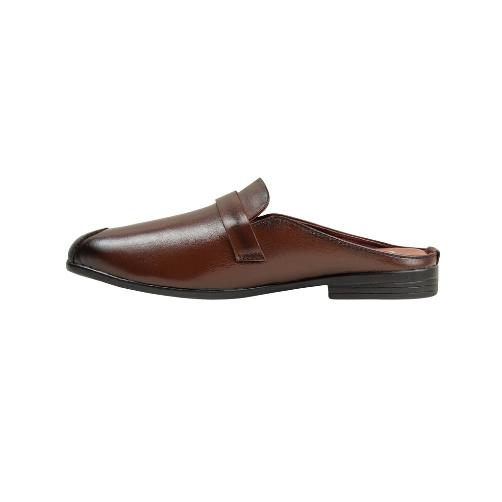 Step into effortless elegance with this premium brown slip-on loafer mule. Crafted from high-quality synthetic leather, this stylish design features a sleek pointed toe and metal buckle accent that adds a modern touch to classic sophistication. The cushioned insole ensures comfort for all-day wear, while the open-back design makes it easy to slip on and off. Perfect for both casual and semi-formal occasions, this shoe brings comfort, class, and convenience together in one refined look