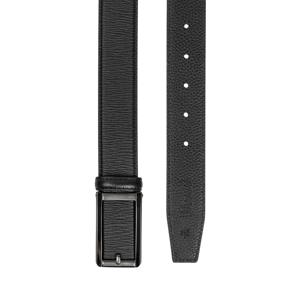 Add a touch of modern sophistication to your wardrobe with The Executive: Men's Black Printed Leather Automatic Belt. Expertly crafted from premium-quality genuine leather, this belt features a fine printed texture that offers a unique and elegant look. The sleek, gunmetal-finish automatic buckle provides a seamless, custom fit without the need for traditional pinholes.