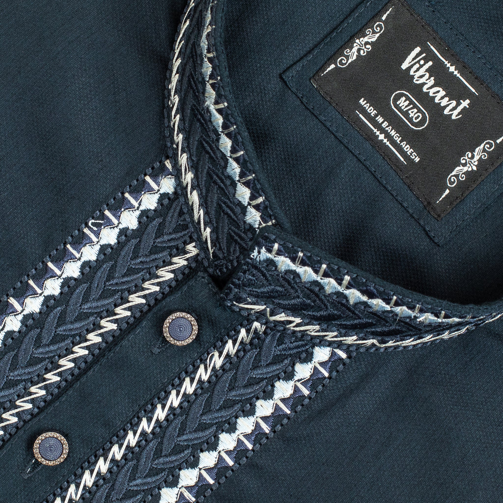 Upgrade your traditional collection with this Premium Navy Blue Cotton Panjabi, crafted from 100% pure cotton to ensure superior comfort and breathability. Designed with detailed embroidery on the collar and front body panel, this Panjabi delivers a refined and stylish ethnic look.