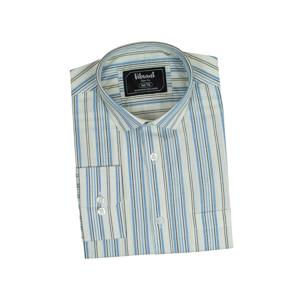 Refresh your wardrobe with this classic white and blue striped slim-fit shirt from Vibrant. Designed for the modern gentleman, this shirt offers a perfect balance of elegance and comfort. The fine stripes in shades of blue and black on a crisp white base deliver a sharp, timeless look suitable for both office wear and casual occasions.